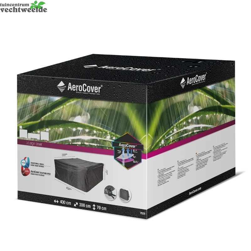 Door temperatuurverschillen is het onvermijdelijk dat er condensvorming onder de hoes ontstaat. AeroCovers zijn voorzien van een ademend membraan. Deze helpt vocht naar buiten te transporteren en houdt tegelijkertijd vuil, stof en regen van buitenaf tegen. Dit is belangrijk om schimmelvorming op uw tuinmeubel of parasol tegen te gaan en de levensduur van uw tuinmeubel te verlengen. AeroCovers zijn solution dyed en door-en-door gekleurd. Hierdoor hebben AeroCovers een hoge kleurechtheid, level 7 op de grey-wool schaal. Standaard hoezen verkleuren veel sneller.