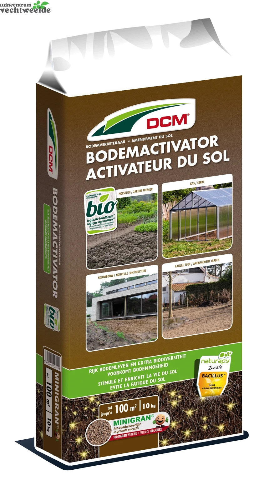 Organische bodemverbeteraar met micro-organismen voor een betere bodemvruchtbaarheid en een rijk en divers bodemleven dat bodemmoeheid helpt voorkomen. Daardoor geschikt voor uitgeputte bodems in kassen. Vitaliseert intensief betreden en gecompacteerde gronden, ideaal voor de aanleg van moestuin, siertuin en gazon. Toepasbaar in de biotuin.